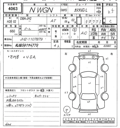 HONDA N-WGN 2016 г., лот № 4063