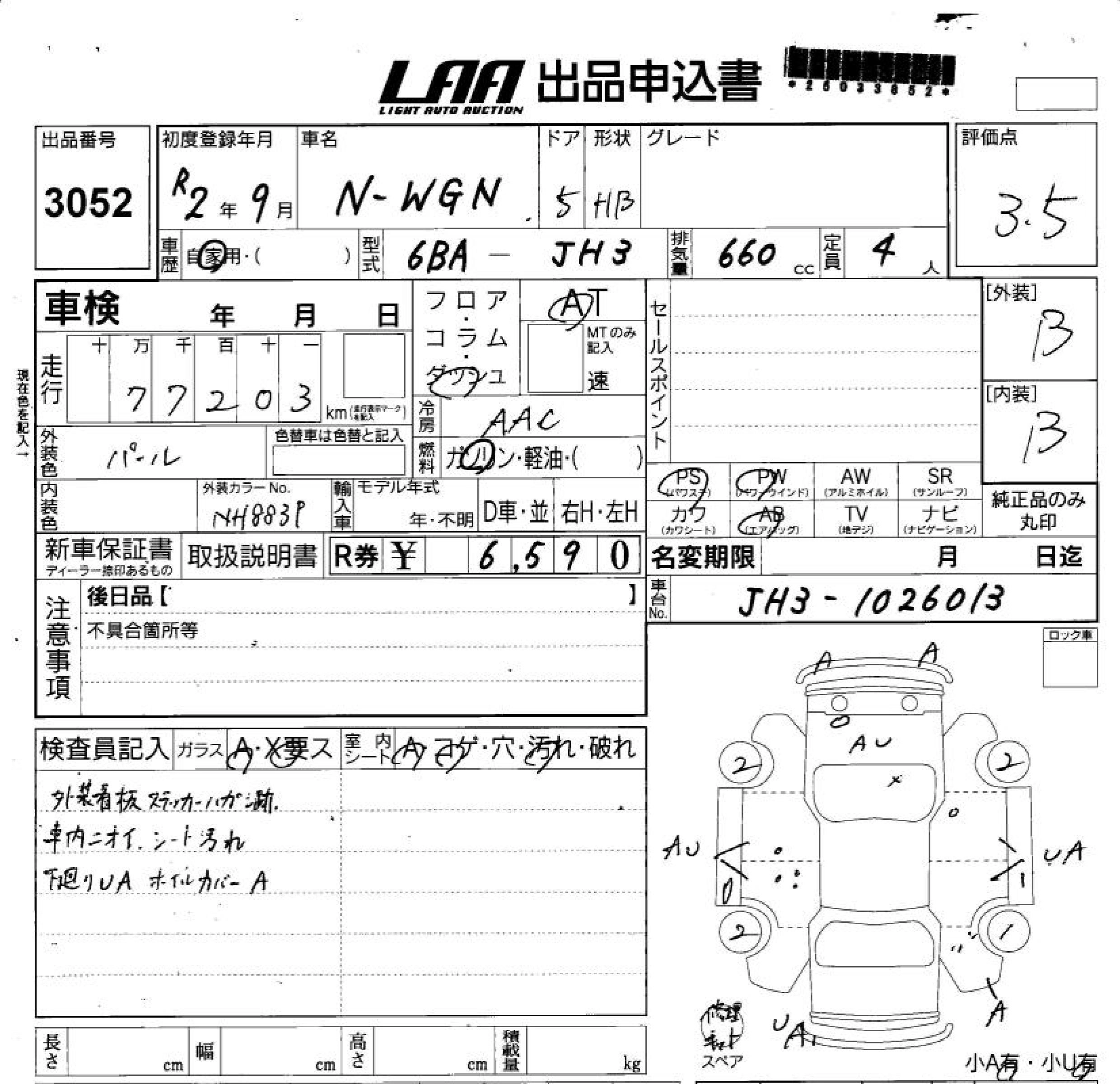 Статус выставлен на аукцион Лот 3052 Аукцион LAA Shikoku Дата аукциона 22.10.2025