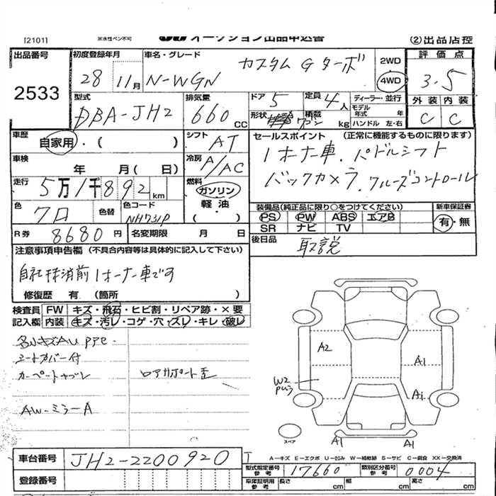 HONDA N-WGN 2016 г., лот № 2533