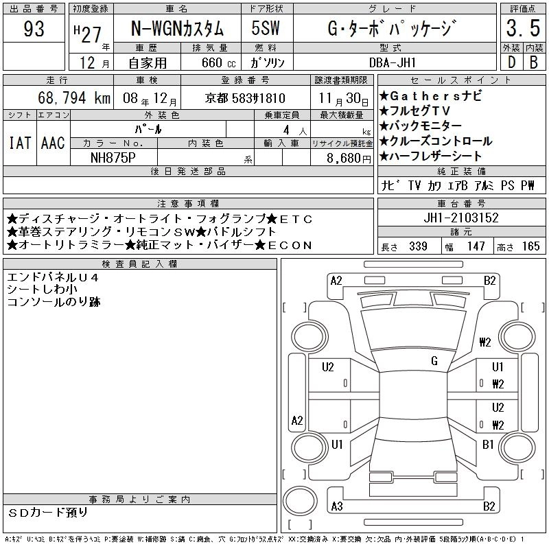 HONDA N-WGN 2015 г., лот № 93