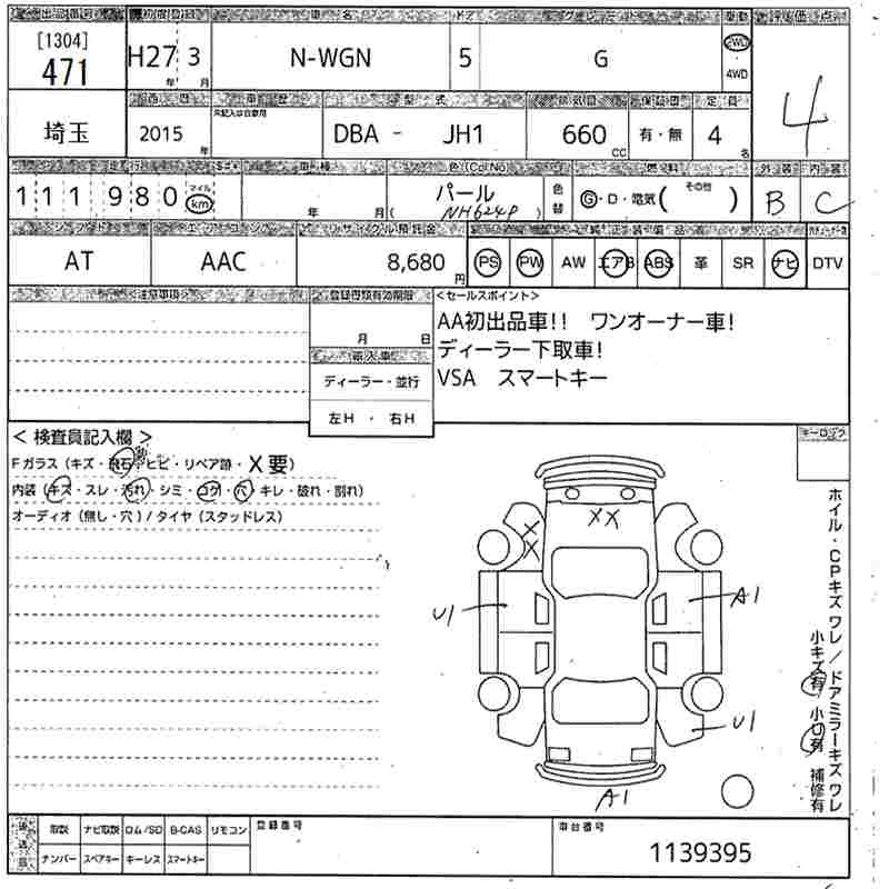 HONDA N-WGN 2015 г., лот № 471