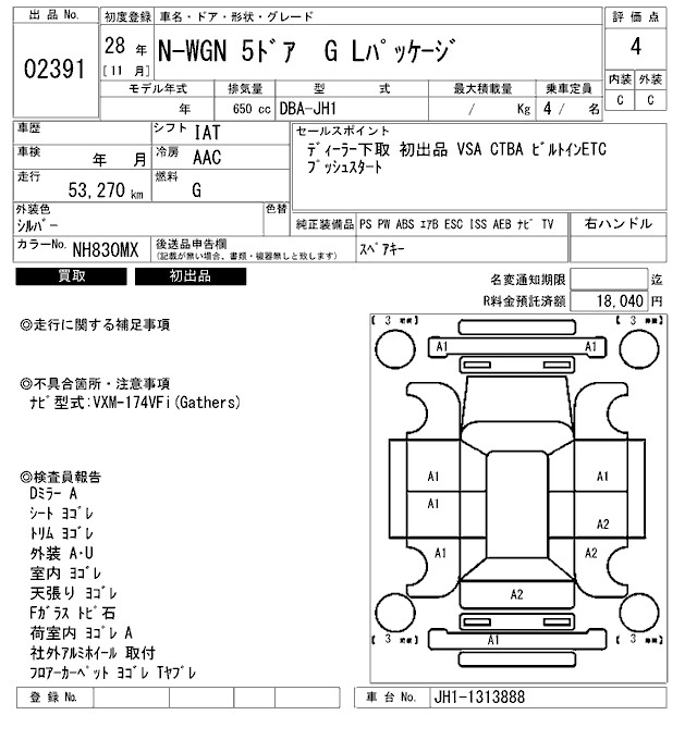 HONDA N-WGN 2016 г., лот № 2391