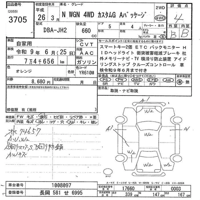 HONDA N-WGN 2014 г., лот № 3705