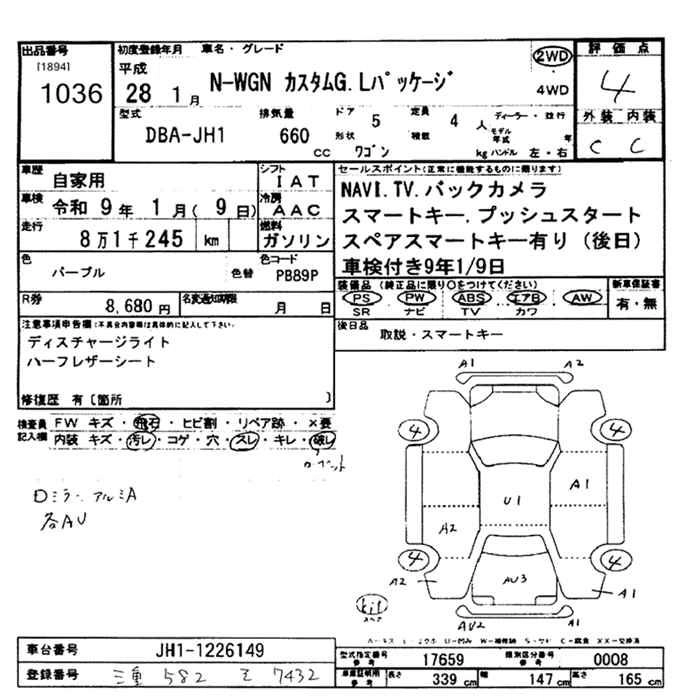 HONDA N-WGN 2016 г., лот № 1036