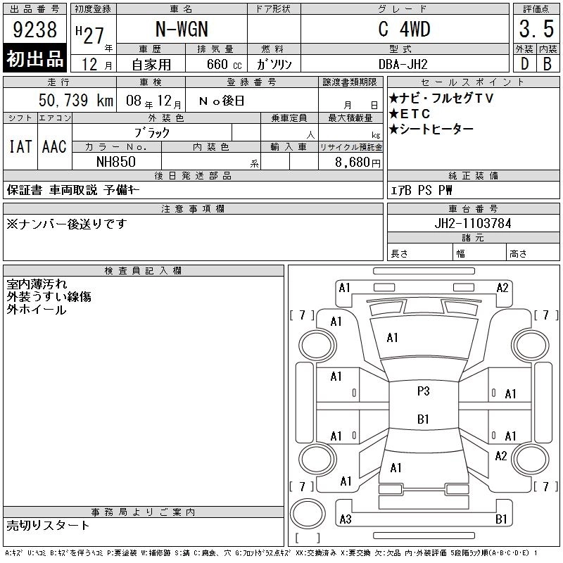 HONDA N-WGN 2015 г., лот № 9238