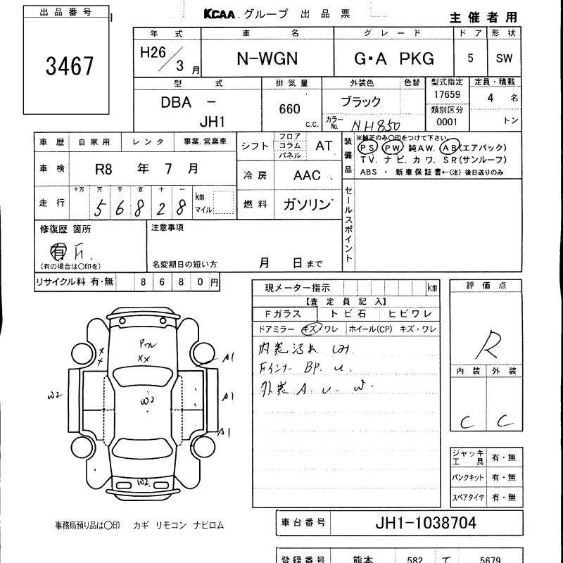 Статус продан Лот 3467 Аукцион KCAA M Kyushu Дата аукциона 12.11.2025