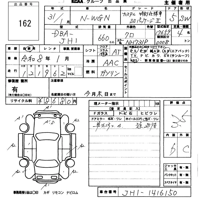 HONDA N-WGN 2019 г., лот № 162