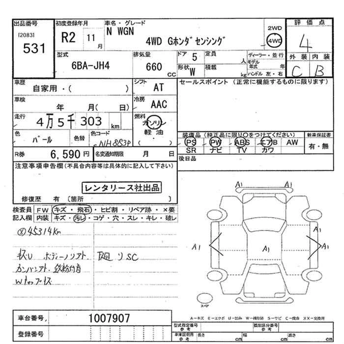 HONDA N-WGN 2020 г., лот № 531