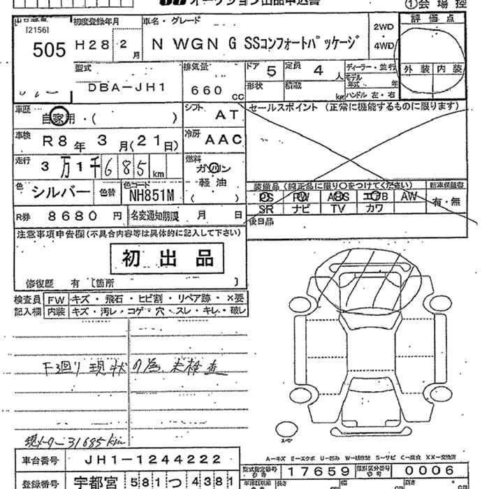 HONDA N-WGN 2016 г., лот № 505