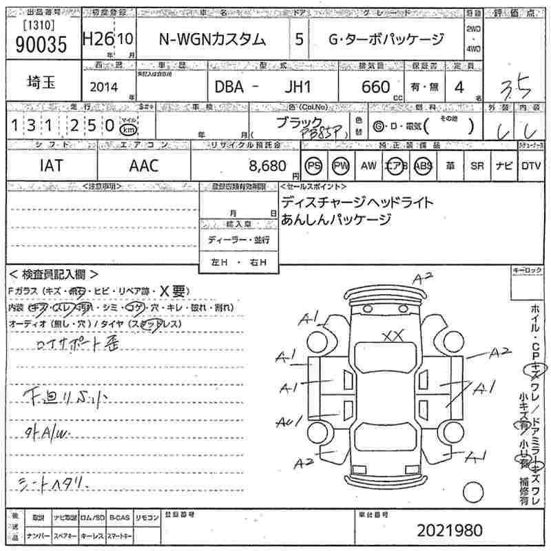 HONDA N-WGN 2014 г., лот № 90035