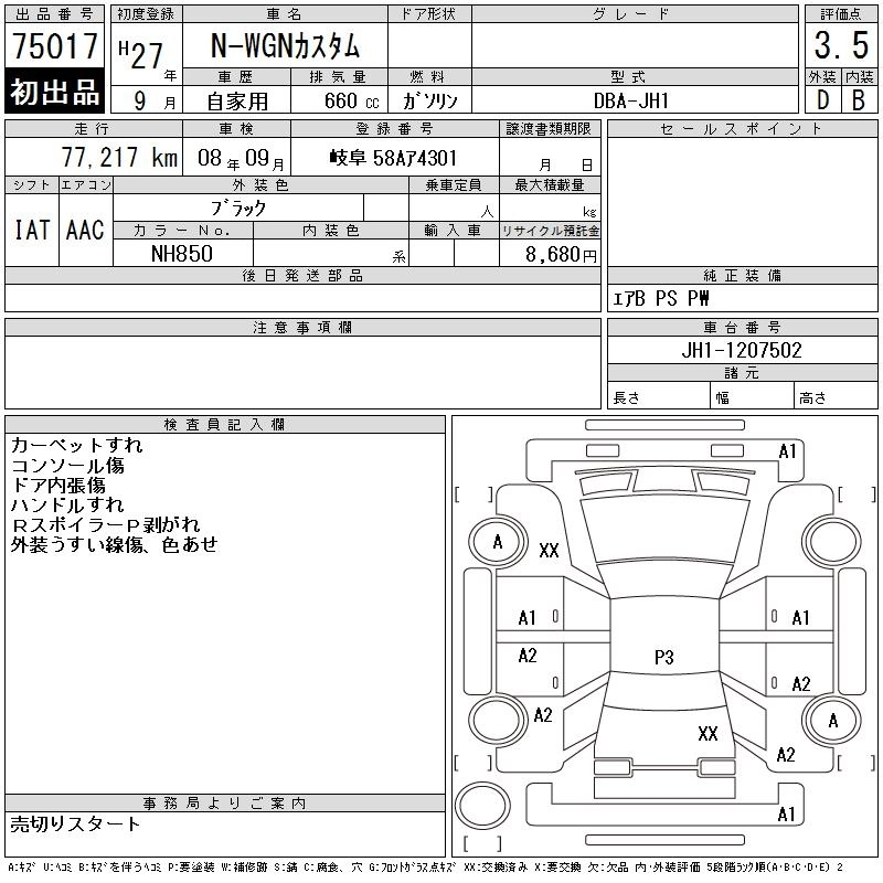 Статус выставлен на аукцион Лот 75017 Аукцион CAA Gifu Дата аукциона 23.12.2025