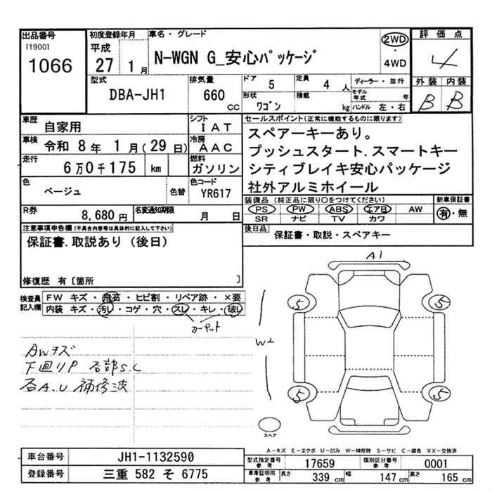 HONDA N-WGN 2015 г., лот № 1066