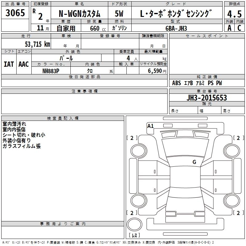 HONDA N-WGN 2020 г., лот № 3065