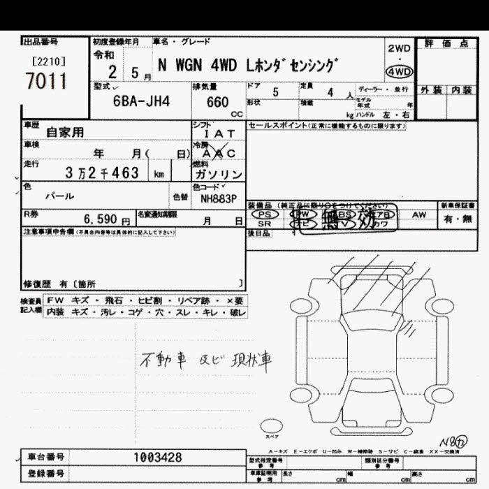 HONDA N-WGN 2020 г., лот № 7011