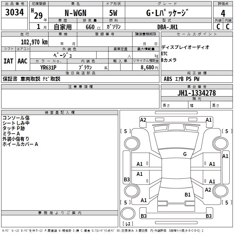 HONDA N-WGN 2017 г., лот № 3034