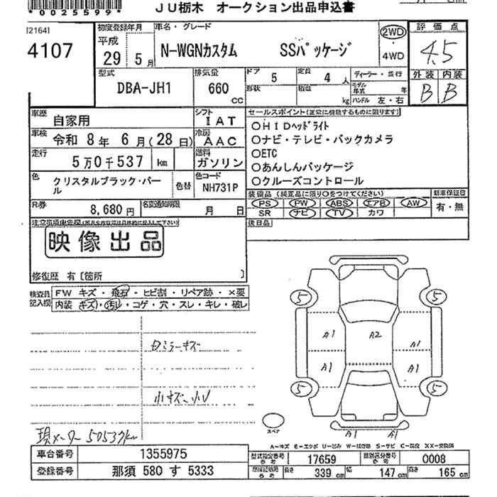 HONDA N-WGN 2017 г., лот № 4107