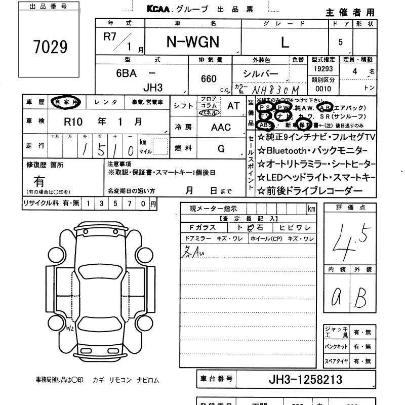 HONDA N-WGN 2025 г., лот № 7029