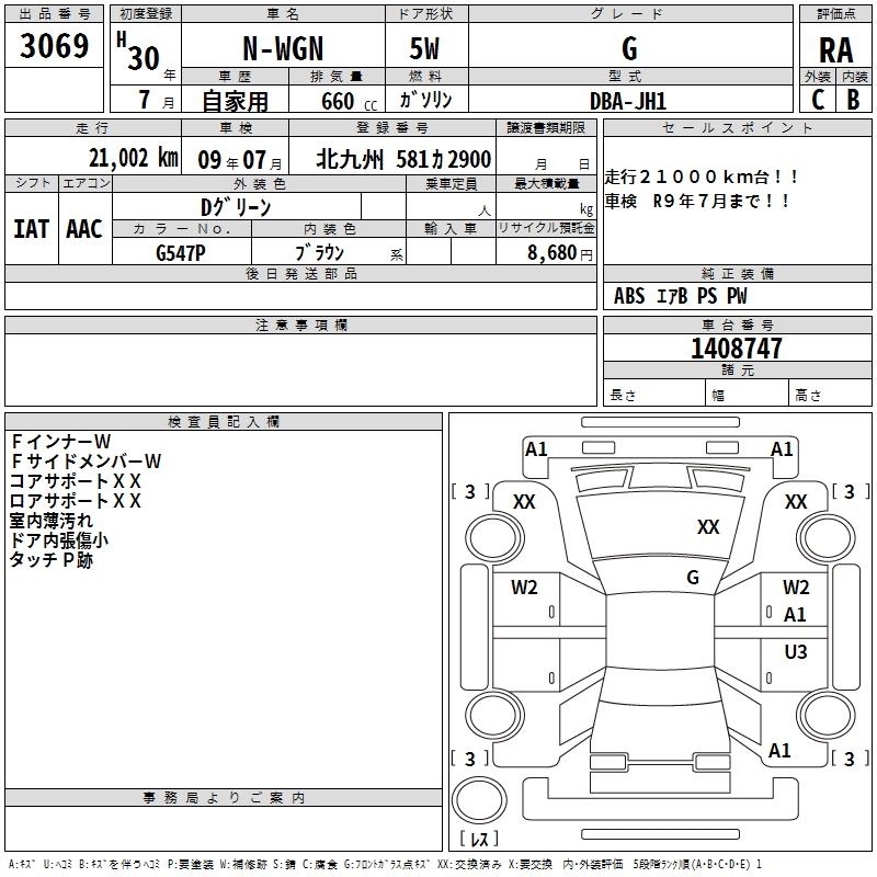 HONDA N-WGN 2018 г., лот № 3069