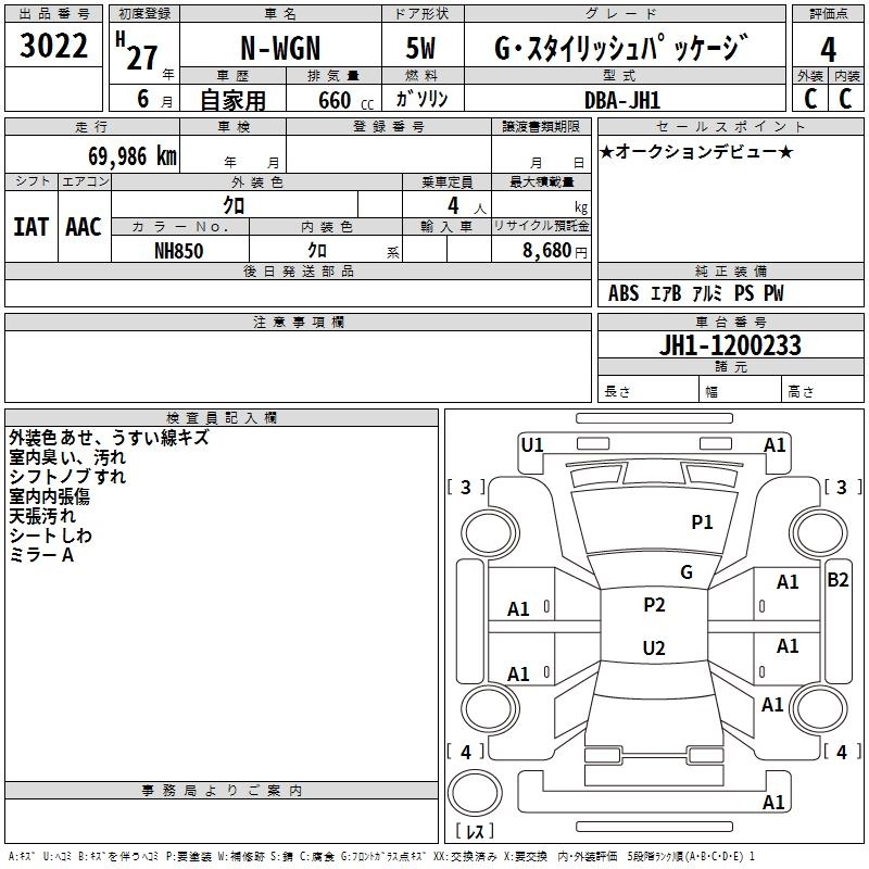 HONDA N-WGN 2015 г., лот № 3022