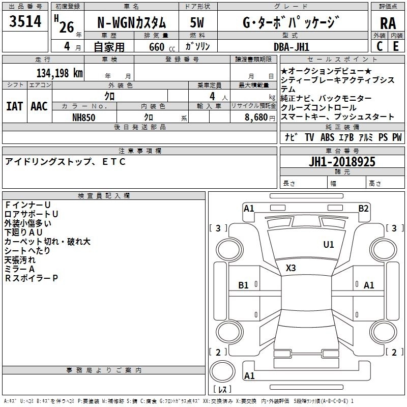 HONDA N-WGN 2014 г., лот № 3514
