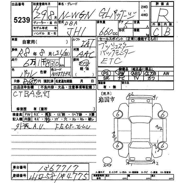 HONDA N-WGN 2017 г., лот № 5239