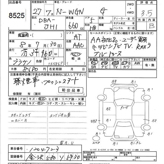 HONDA N-WGN 2015 г., лот № 8525