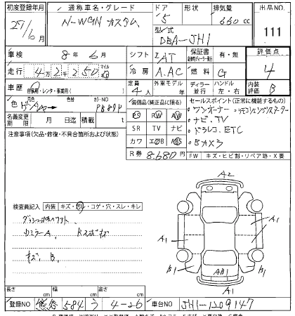 HONDA N-WGN 2015 г., лот № 111