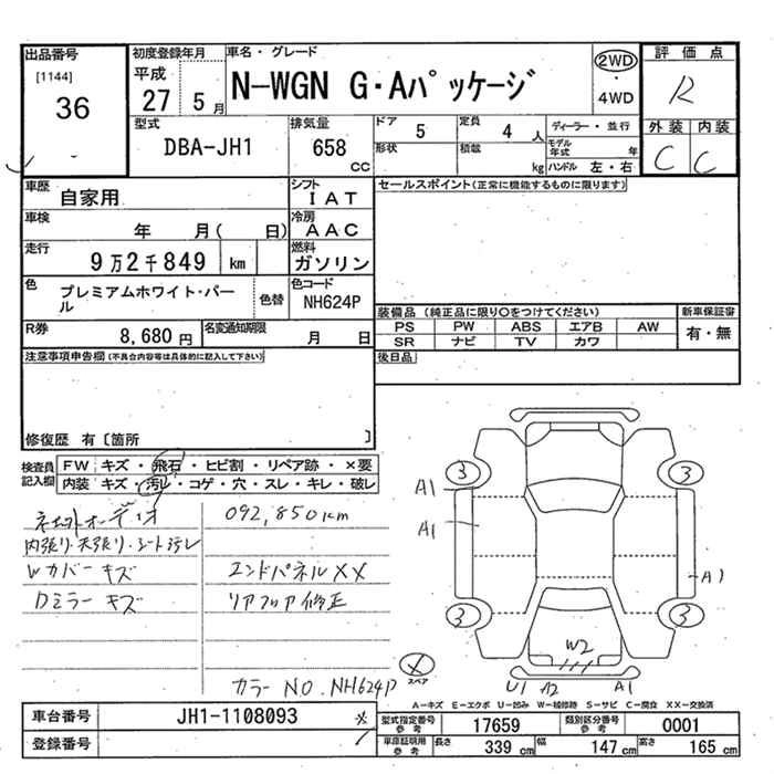 HONDA N-WGN 2015 г., лот № 36