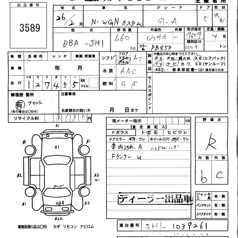 HONDA N-WGN 2014 г., лот № 3589