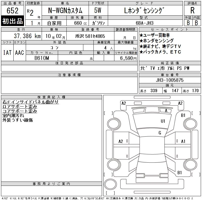 HONDA N-WGN 2020 г., лот № 652