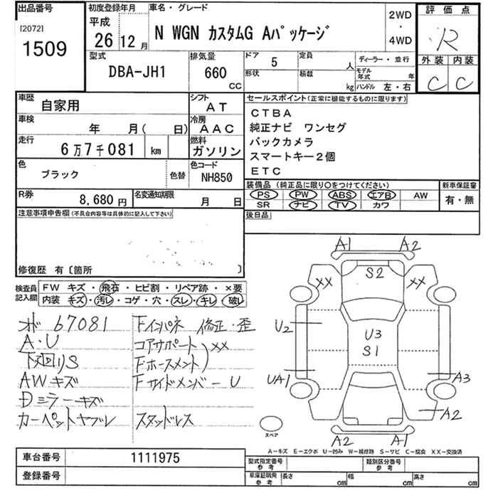 HONDA N-WGN 2014 г., лот № 1509