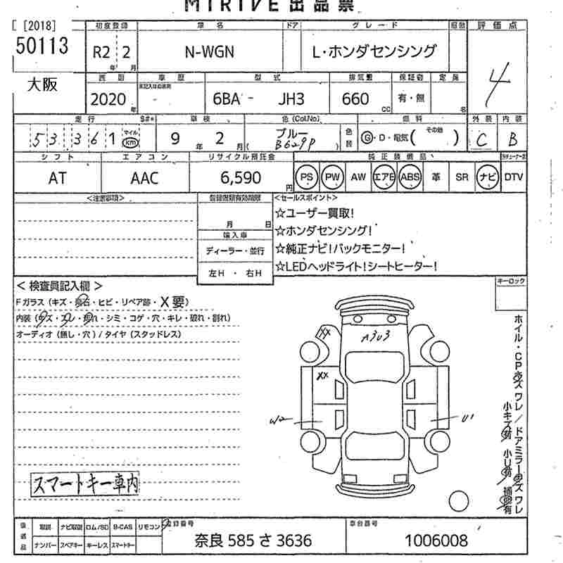 HONDA N-WGN 2020 г., лот № 50113