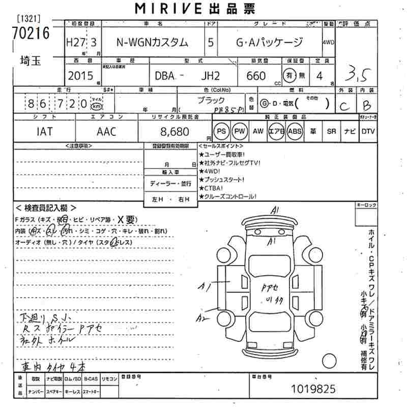 HONDA N-WGN 2015 г., лот № 70216