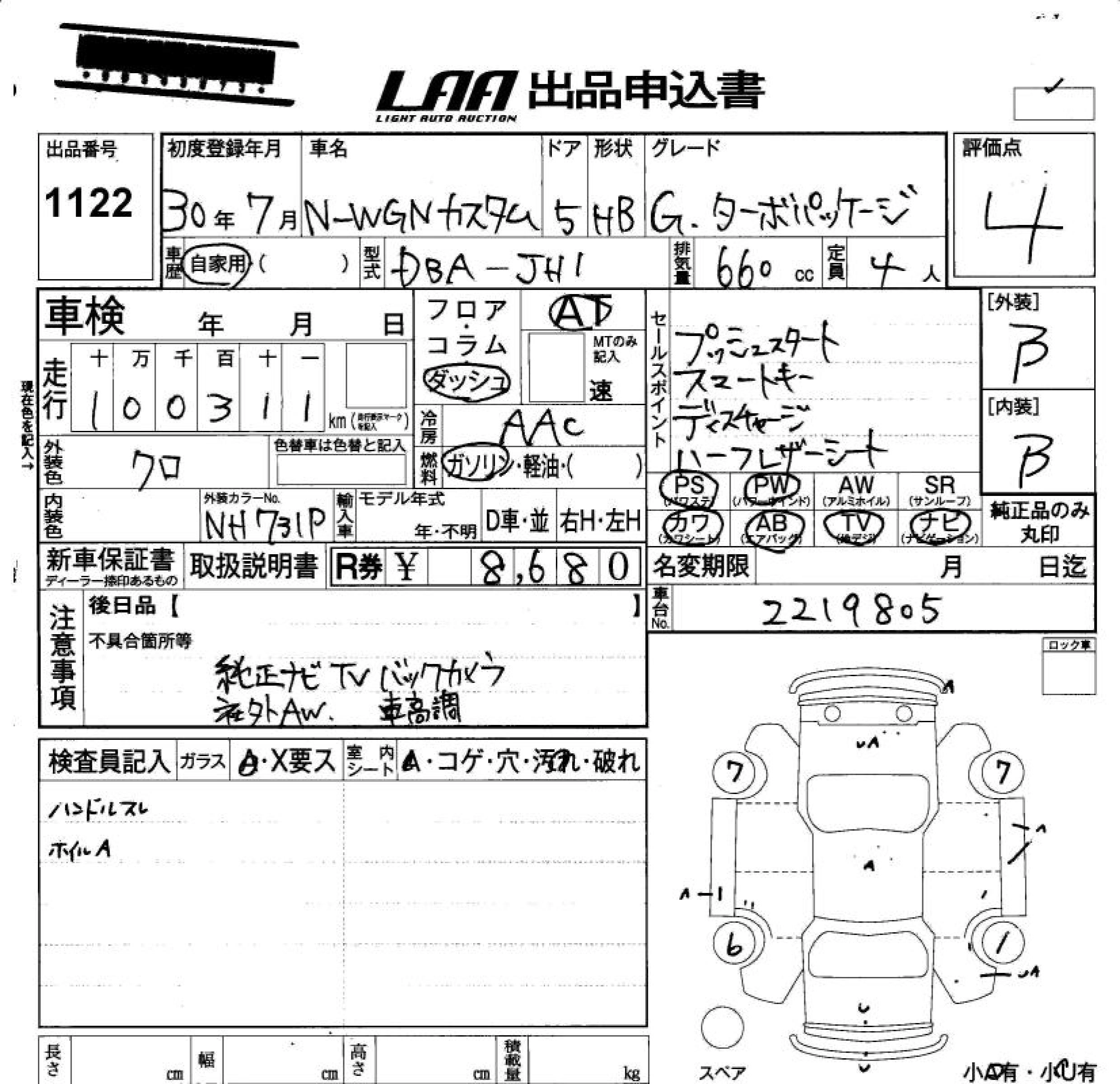 HONDA N-WGN 2018 г., лот № 1122