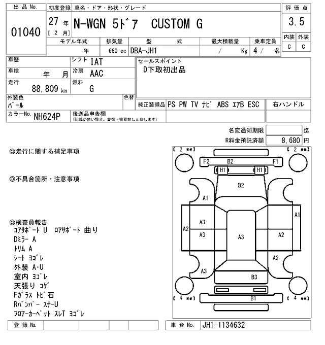 HONDA N-WGN 2015 г., лот № 1040