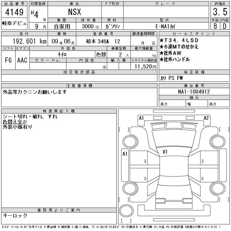 Статус выставлен на аукцион Лот 4149 Аукцион CAA Gifu Дата аукциона 10.03.2026