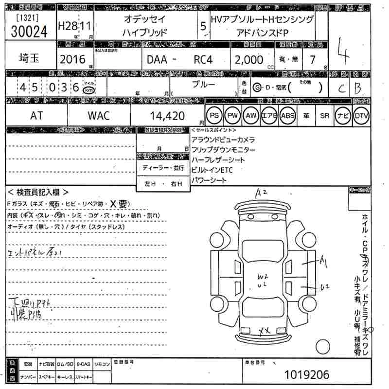 HONDA ODYSSEY HYBRID 2016 г., лот № 30024