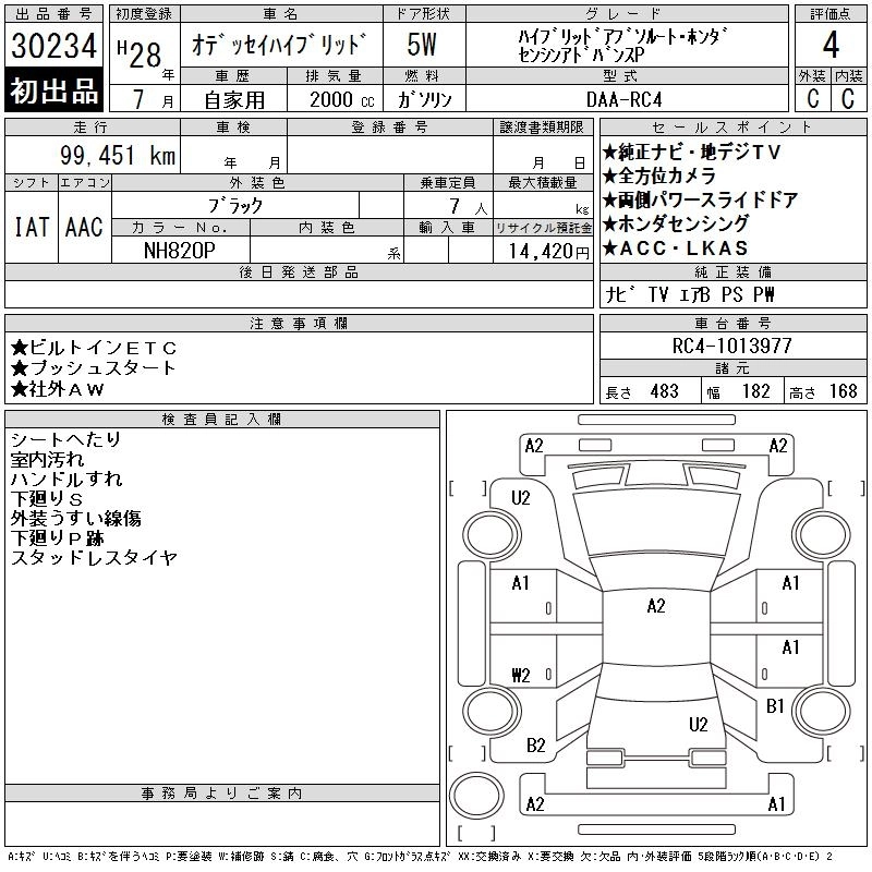 HONDA ODYSSEY HYBRID 2016 г., лот № 30234