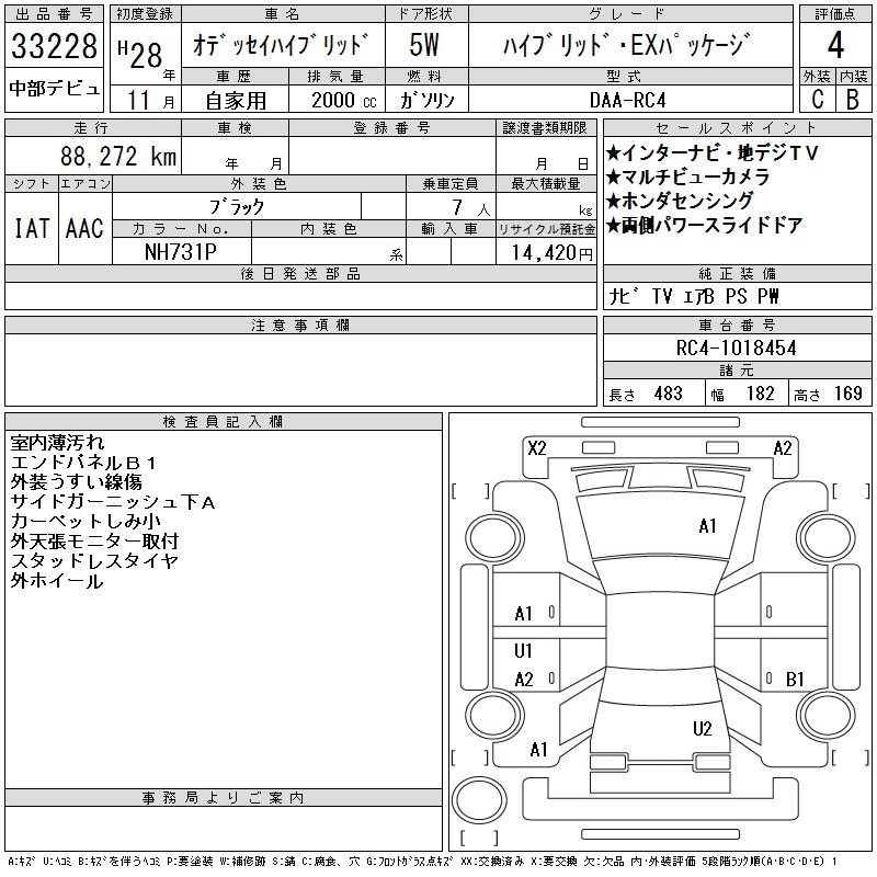 HONDA ODYSSEY HYBRID 2016 г., лот № 33228