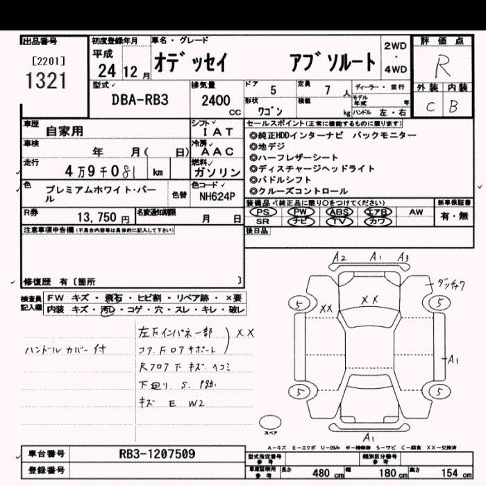 HONDA ODYSSEY 2012 г., лот № 1321