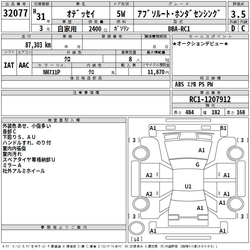 HONDA ODYSSEY 2019 г., лот № 32077