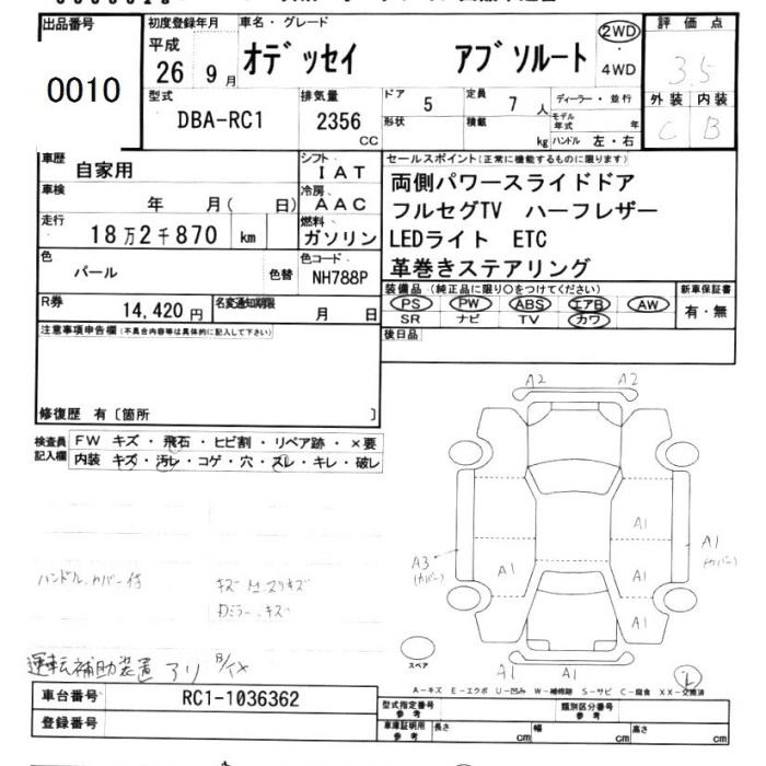 HONDA ODYSSEY 2014 г., лот № 10