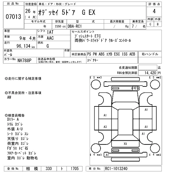 Год выпуска2014 Пробег 96 000 км КузовRC1 КомплектацияG EX