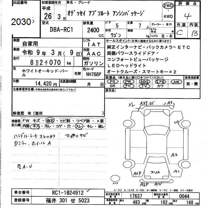 HONDA ODYSSEY 2014 г., лот № 2030
