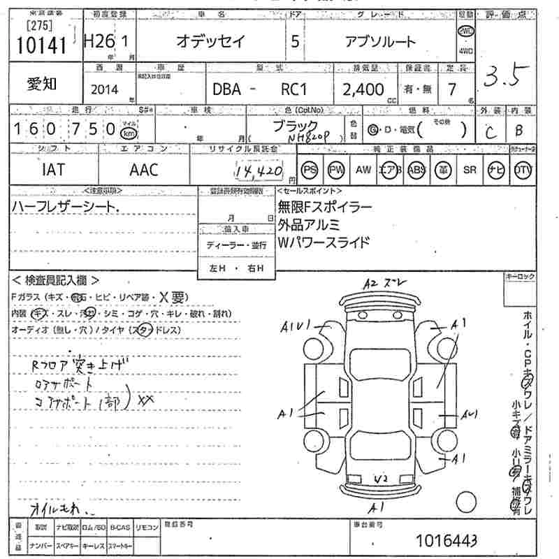 HONDA ODYSSEY 2014 г., лот № 10141
