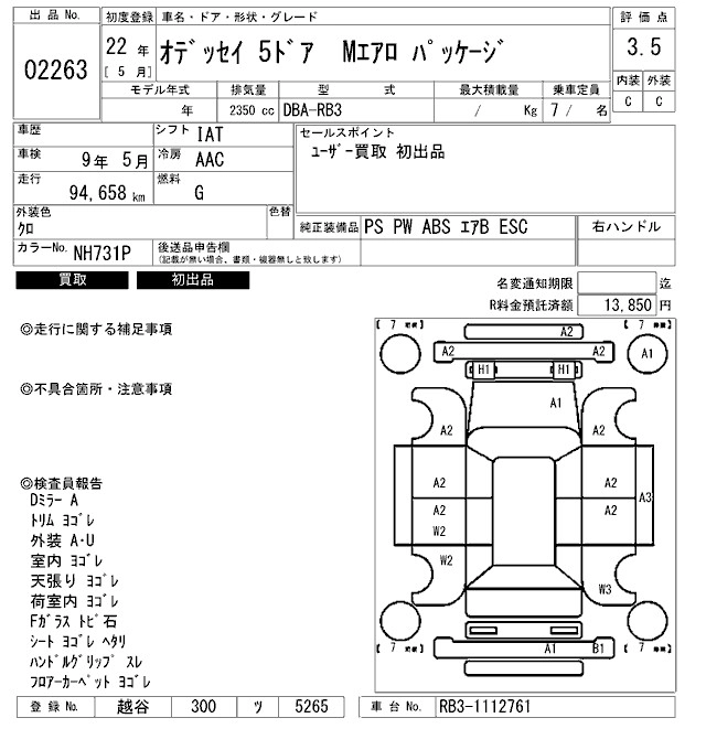 Статус продан Лот 2263 Аукцион ARAI Bayside Дата аукциона 23.01.2026