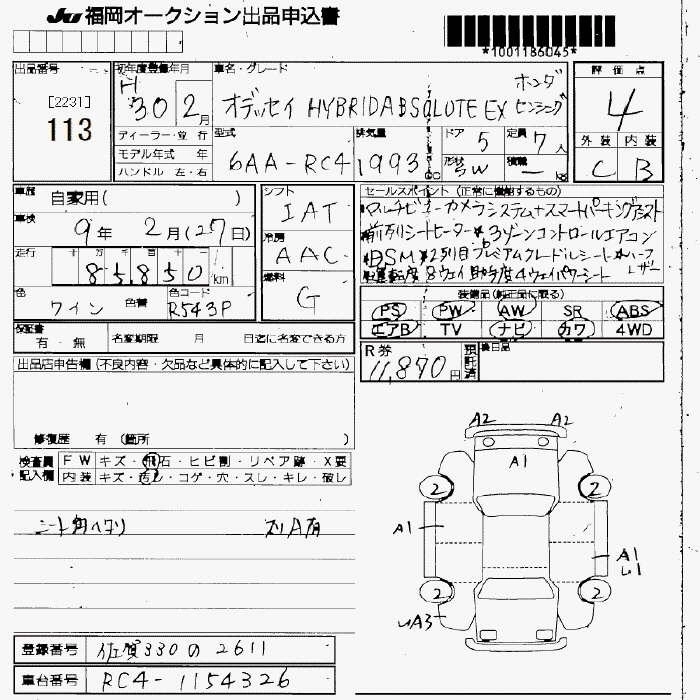 Статус не продан Лот 113 Аукцион JU Fukuoka Дата аукциона 23.01.2026