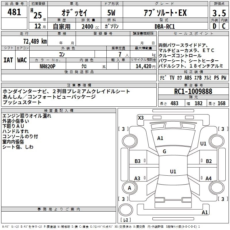 HONDA ODYSSEY 2013 г., лот № 481
