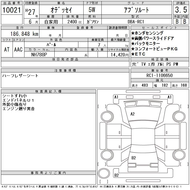 HONDA ODYSSEY 2015 г., лот № 10021