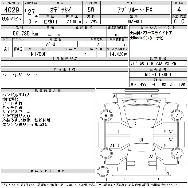 HONDA ODYSSEY 2015 г., лот № 4029